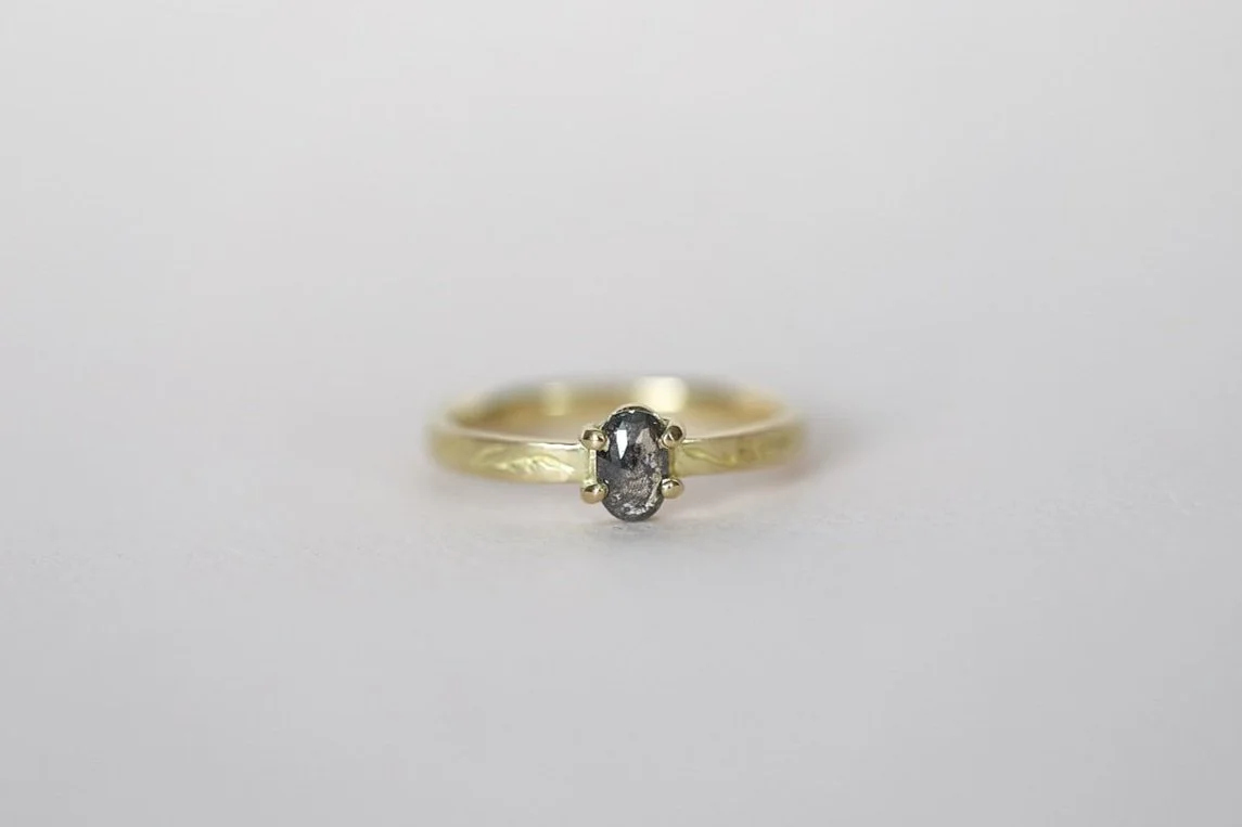 ‘Leif’ moon is a lightweight and tactile little dome shape, with delicate engraved features with ancient texture and patina to the metal. It is light and easy to wear.