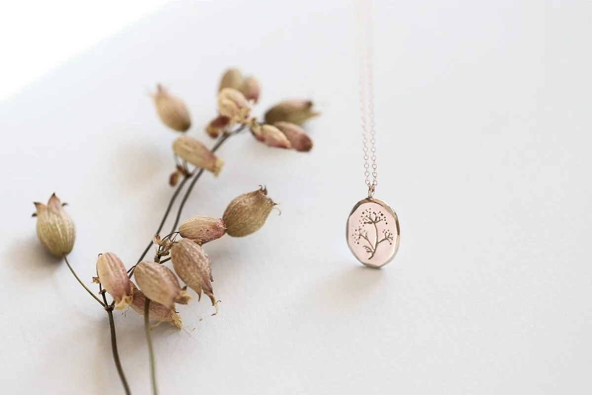 Lencten Necklace (Old English word for Spring) features the beautiful Cow Parsley that borders our country roads every May and June.